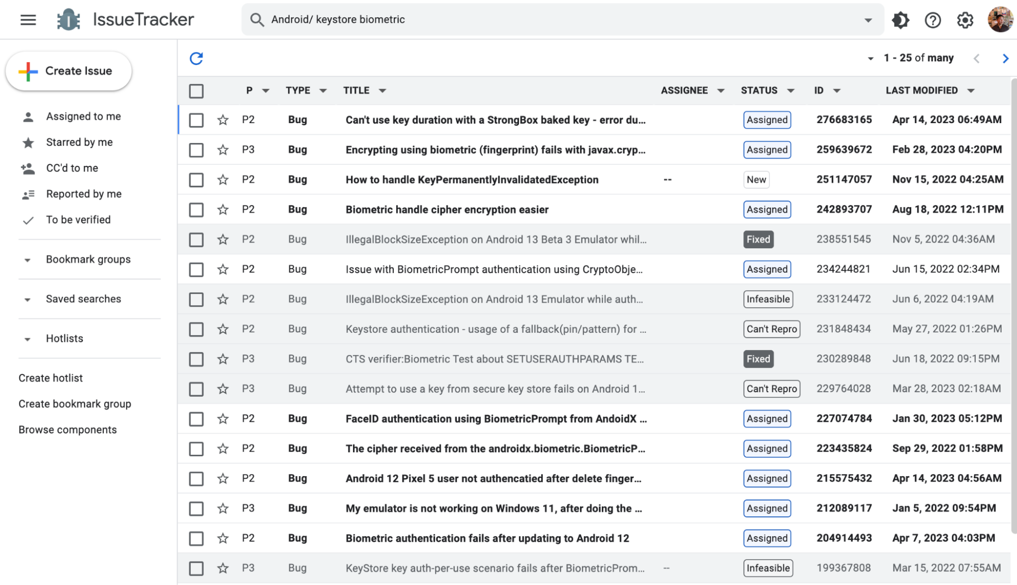 Android IssueTracker results for "keystore biometrics"