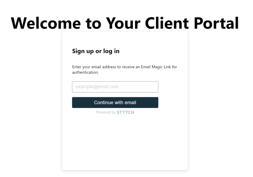 To allow clients secure access to your portal, you need a way to authenticate them via their email address. While you could build this feature yourself, you can also use Stytch to set this up with very little custom code.