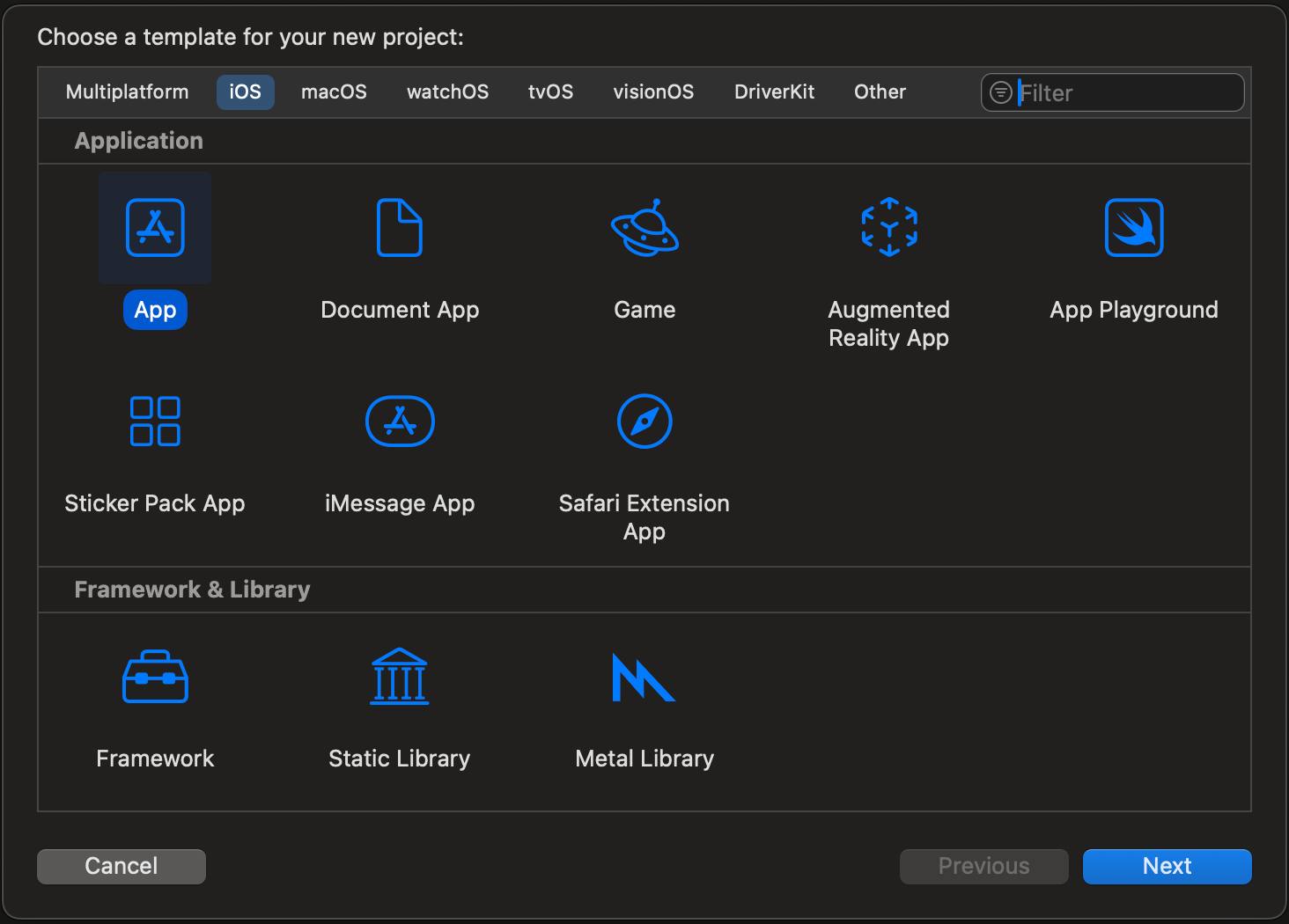 In Xcode click File->New->Project and select App and click Next.