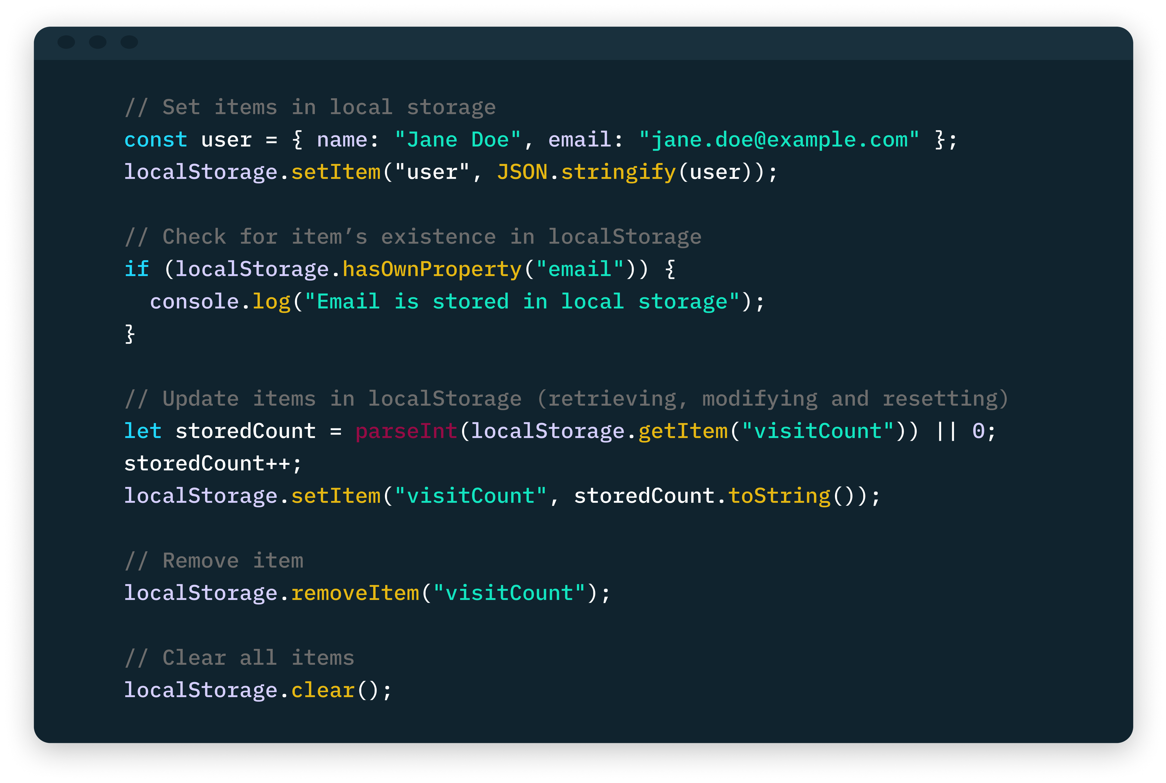 Choosing the right storage option for your web application depends on your unique security requirements and constraints. For instance, cookies are best suited for storing data that needs to be readable by the server, making them ideal for handling sessions and tokens. Session storage is designed for storing data within a single session, making it suitable for temporary and tab-specific data. localStorage is the recommended choice for data that needs to be retained across multiple sessions, as it provides persistent data storage.