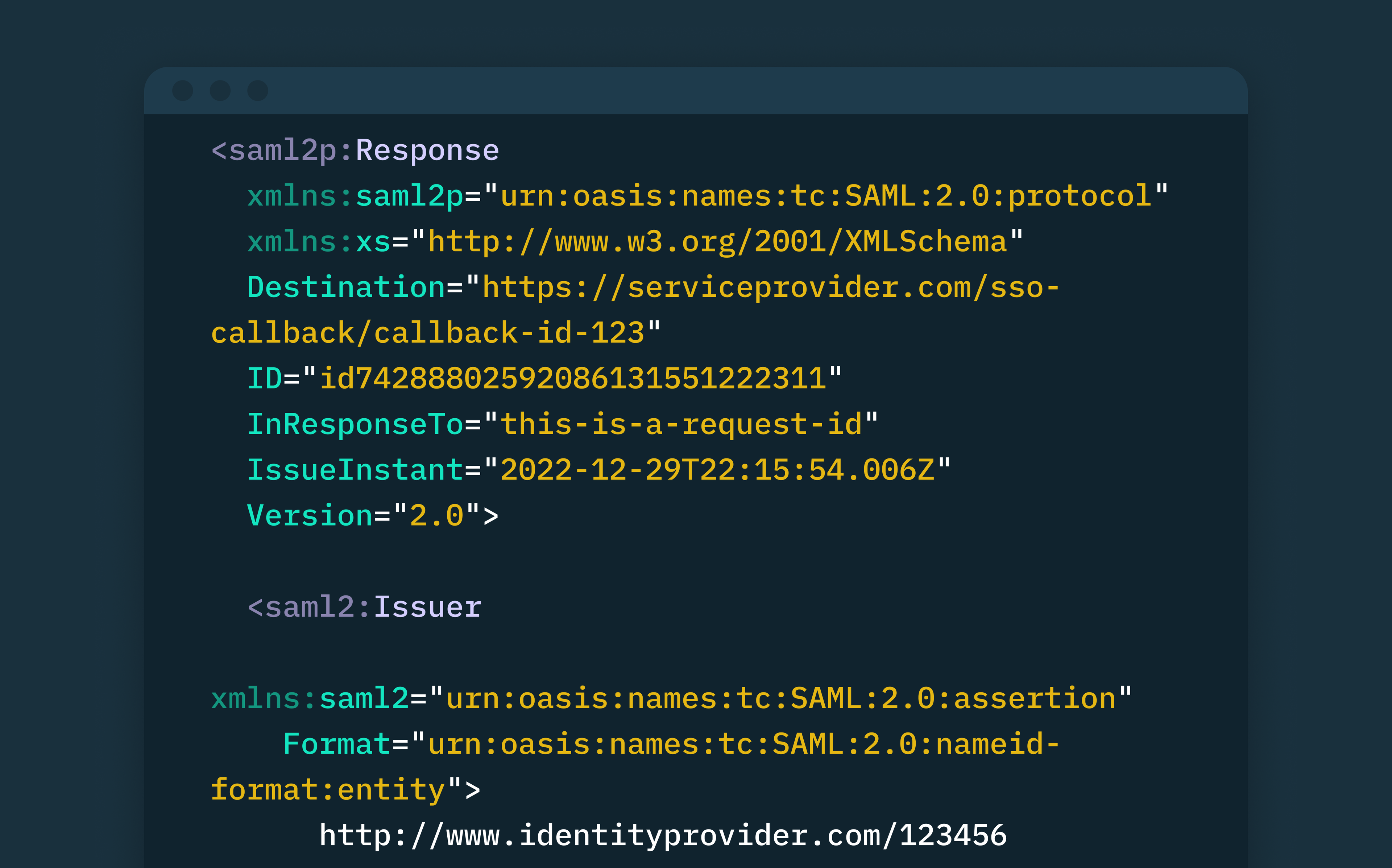 - Issuer: Information about the identity provider that created the assertion.