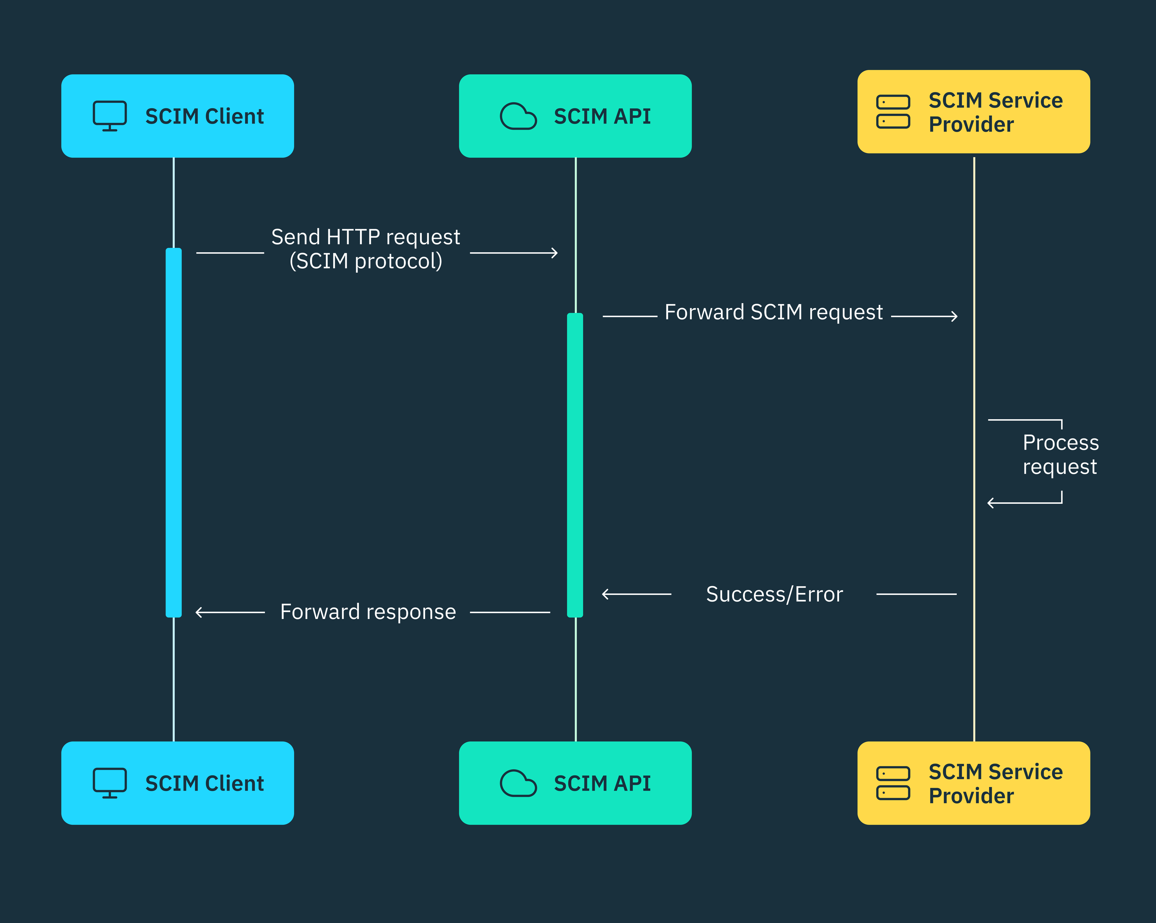 SCIM Clients perform CRUD operations on user and group resources by sending HTTP requests to Service Providers via standardized SCIM API endpoints. However, in cases where a Service Provider needs to initiate a SCIM request to an IdP, it will act as the SCIM Client while the IdP functions as the SCIM server.