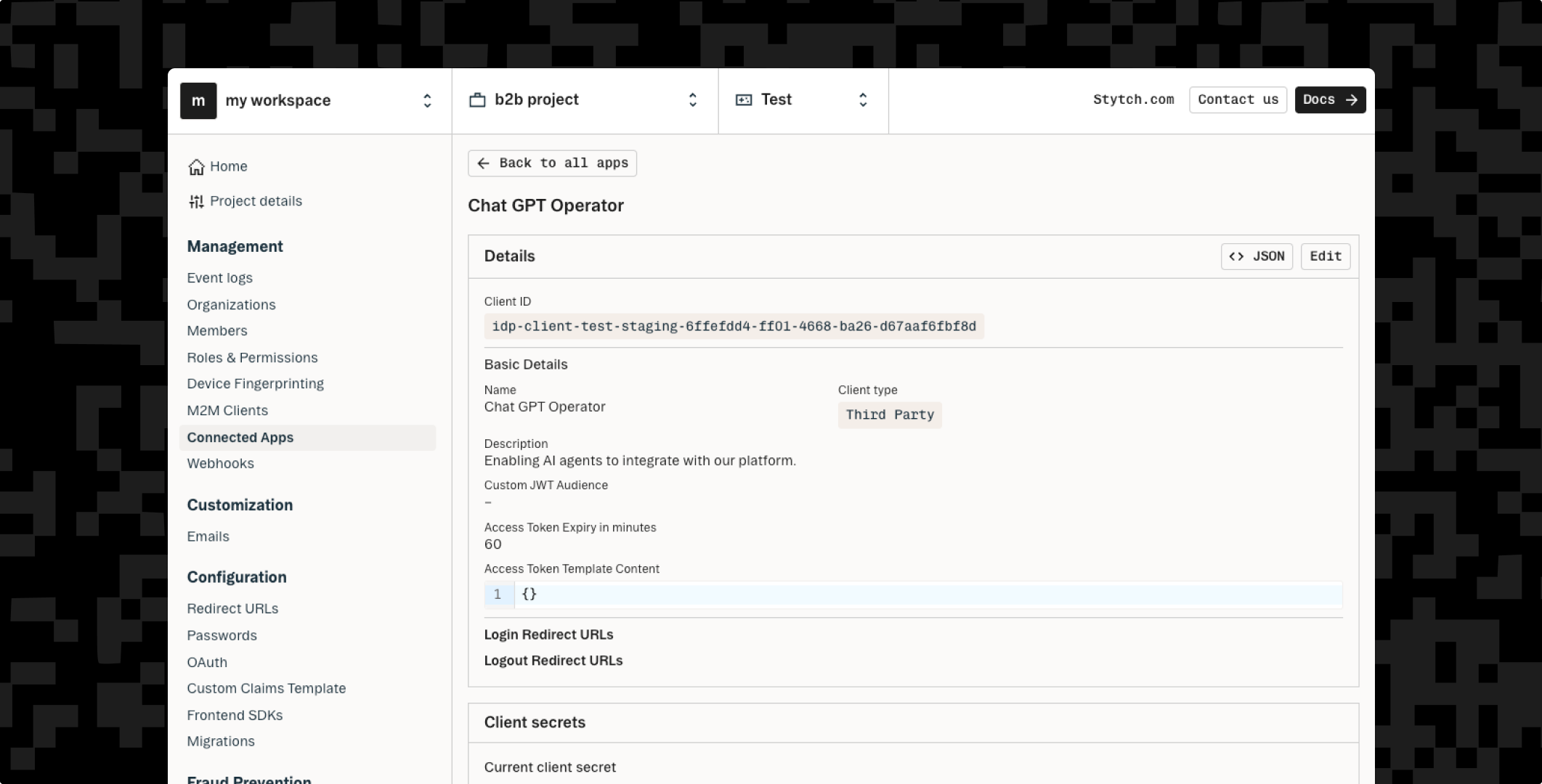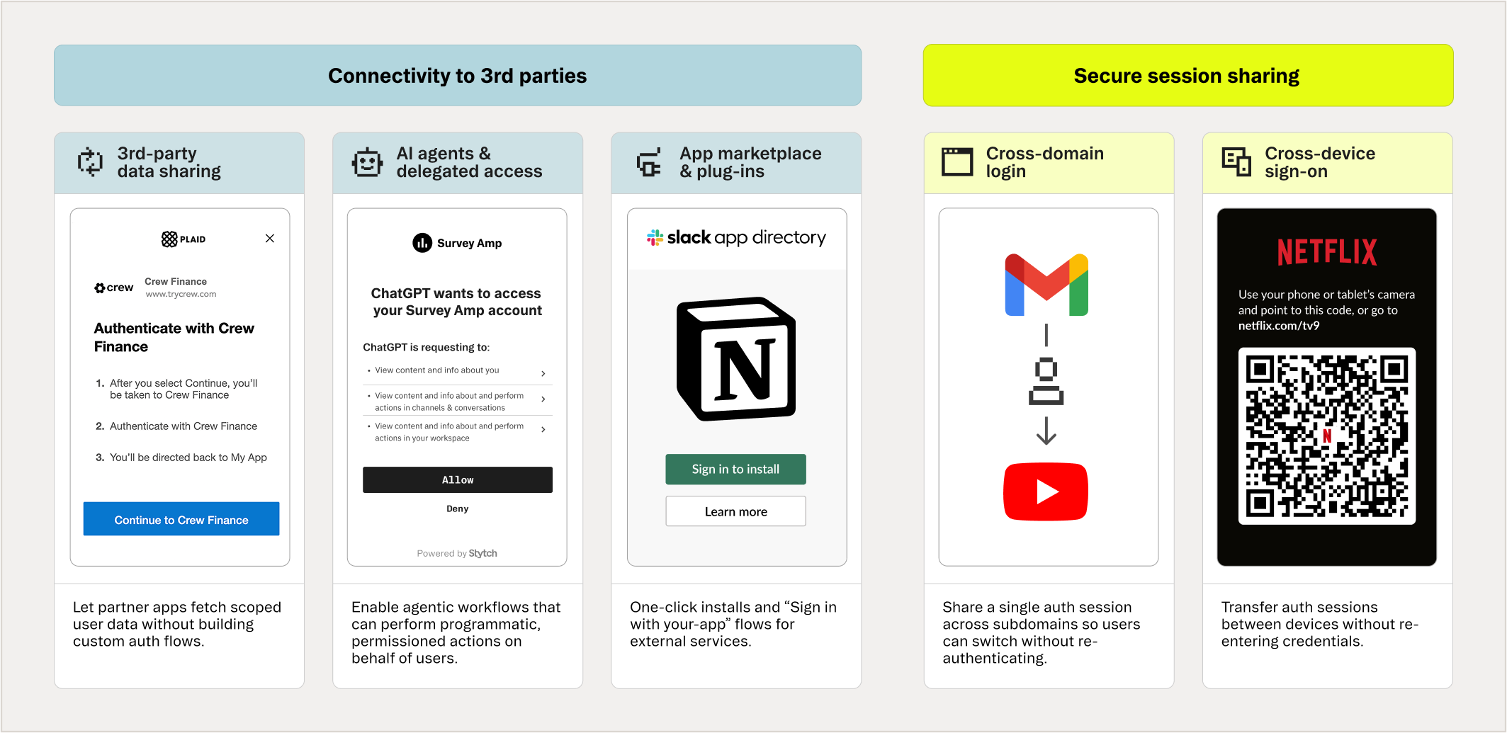 Stytch’s Connected Apps makes your app an identity provider, enabling the next-wave of AI agents to interact with your platform securely, and with the right permissions in place within the OAuth framework.