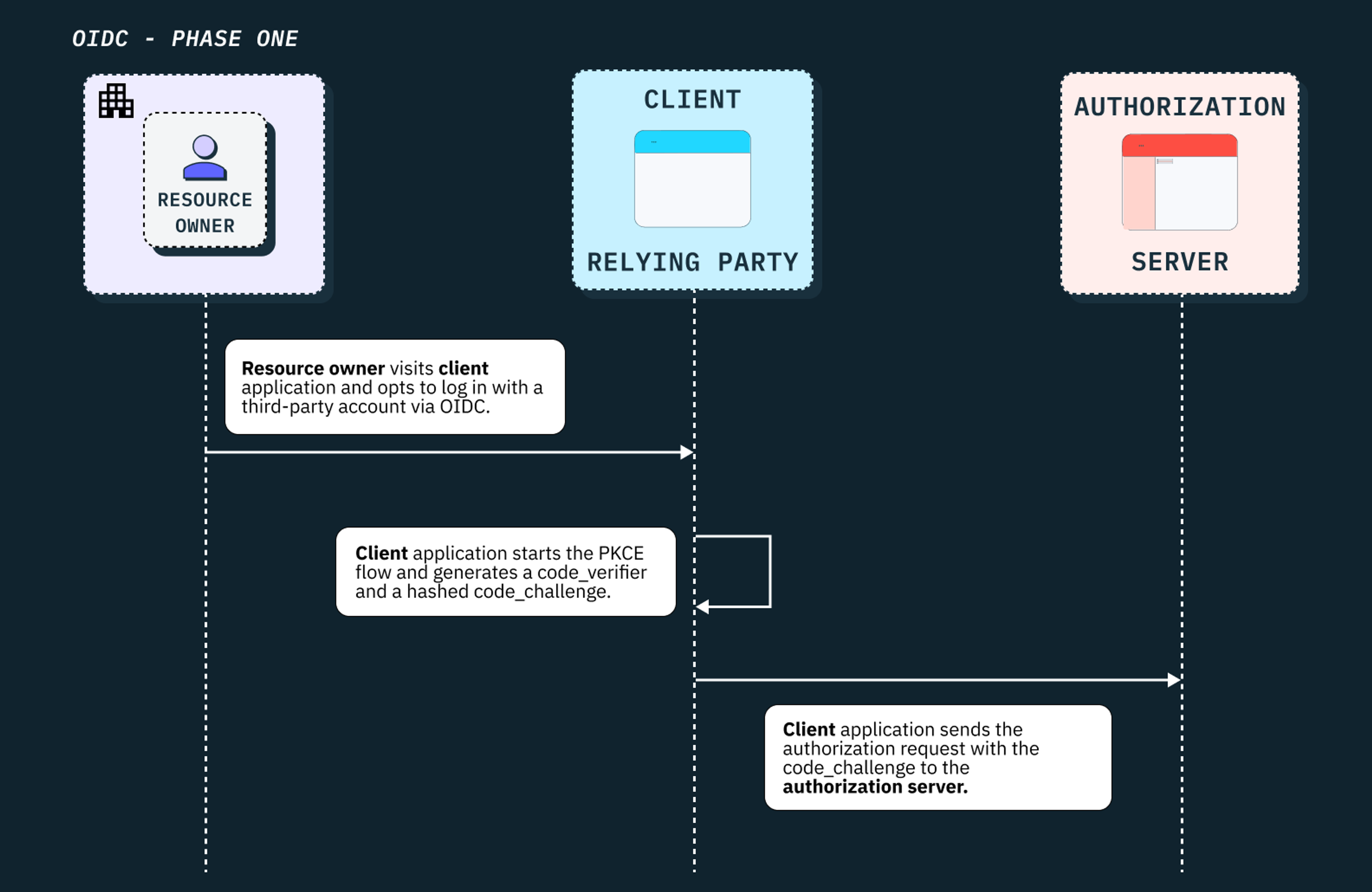 A user initiates the OpenID Connect flow by choosing a third-party platform, such as Google or Facebook, to login with on a client application. The first phase involves the client application and the authorization server establishing a secure connection to prevent man-in-the-middle attacks and other security threats.