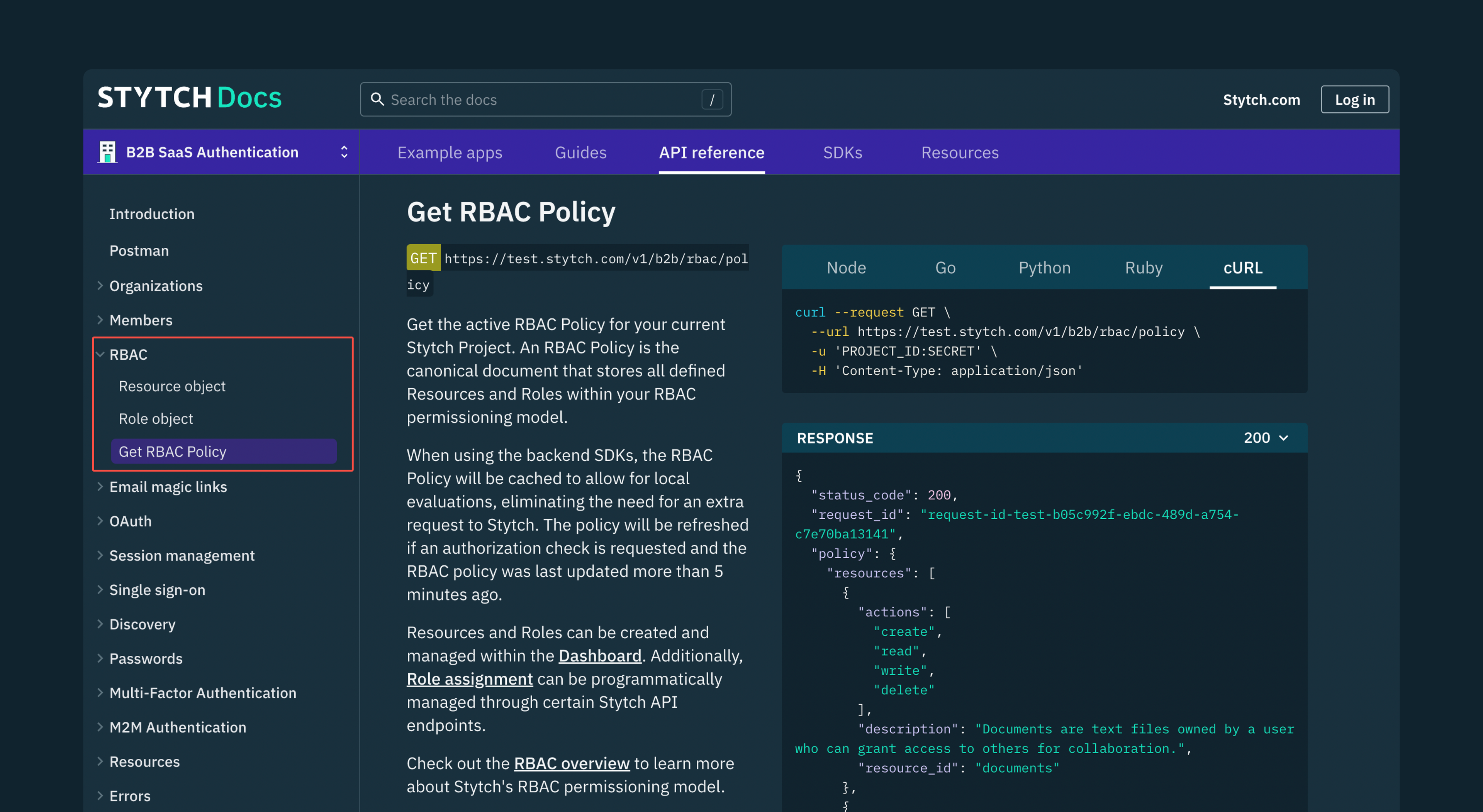 Stytch provides a flexible RBAC product that’s designed to accommodate complex authorization requirements within multi-tenant architectures. Whether you’re looking to enforce robust access control in B2B, B2B2C, or B2B2B SaaS applications, we built our RBAC solution with your use case in mind.